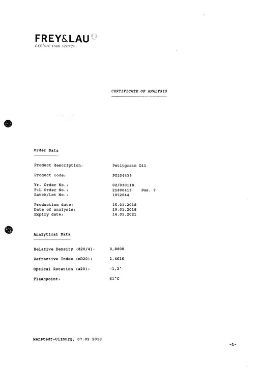 Το αιθέριο έλαιο του Πετίτ Γκρεϊν (Πτι-Γκρεϊν - Νερατζόφυλλο) προέρχεται από τα φρέσκα φύλλα, και ορισμένες φορές από τους νέους και τρυφερούς βλαστούς, της Νερατζιάς, μέσω ατμο-απόσταξης, και έχει ένα χαρακτηριστικό άρωμα.